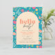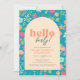 Les fleurs de néon mignonnes dans un style rétro distinctif font de cette invitation de fête d'anniversaire pop! Mélange pastel, rose, orange et bleu sur un arrière - plan bleu vif. Une invitation simple, mais chic avec les mots "Bonjour, quarante!" mais peut être édité pour n'importe quel âge. Il est facile de customiser ce design avec tous les détails de votre fête.