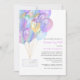 Douche bébé ou nuptiale longue distance Glitzy par invitation postale avec parties scintillant irisée de style arc-en-ciel et ballons de confettis.