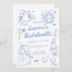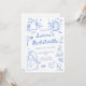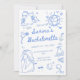 Votre invitation parfaite pour votre enterrement de vie de jeune fille. Une illustration ludique d'une future mariée entourée de ballons, de confettis et de verres à champagne.