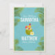 île vintage, palmiers, et voilier plage destination carte d'invitation à la douche nuptiale avec cocktail de coco inverse.
