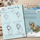 Spark your guests' creativity with this unique "Draw a Baby" game! The front provides a step-by-step hand-drawn guide to sketching a sweet village baby. The back features our whimsical Village Fairy delivering the little one in a green sleigh, with coloring instructions for the guests. This interactive card is part of the "It Takes a Village" ice blue suite and makes for a hilarious and heartwarming activity.