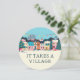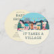 Celebrate your little one on the way with this unique round baby shower invitation featuring a charming pastel winter village and the heartfelt phrase “It takes a village.” Soft blue and yellow tones make it perfect for any gender. Customize the back with your event details, ideal for cozy seasonal gatherings or modern gender-neutral themes.