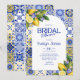Italian Mosaic Blue Tile Lemons Arch Bridal Shower Invitation.
