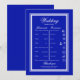Carte d'itinéraire de mariage bleu cobalt et blanc. La collection élégante sera parfaite pour une célébration de jardin intérieur ou extérieur pour un mariage, des demoiselles d'honneur, une douche de mariée, une douche de bébé ou une célébration de style champêtre. La collection entière est personnalisable. Profitez de votre célébration, à votre santé !