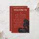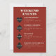 Une destination moderne et amusante sac cadeau de bienvenue de mariage pour remercier vos invités d'être venus à votre événement à Las Vegas! Cette carte de sac de bienvenue mariage est dotée de graphite noir en gras de carte à jouer costume graphiques, d'un rendu moderne de la ligne d'horizon de Las Vegas, ainsi que de police et de texte entièrement personnalisables sur arrière - plan rouge casino. Sur le dos, vous trouverez des détails sur l'itinéraire du week-end mariage personnalisable. Parfait pour un événement moderne ou classique, cette collection d'invitation élégante est polyvalente !