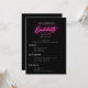 Carte Itinéraire Neon Pink Modern Bachelorette Week-end. Cette invitation moderne comprend des sections pour beaucoup d'informations, y compris l'emplacement, le prix et l'horaire des événements.