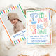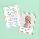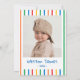 The back of the invitation includes a photo area framed with colorful stripes, making it a sweet way to share your favorite picture of the birthday star with friends and family.