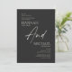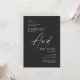 Ces invitations de mariage officielles de 5 po x 7 po présentent un design minimaliste avec des lettres en ivoire sur un arrière - plan noir avec les espaces réservés suivants, honorifique, nom du parent, introduction, prénom et nom du couple mariage, jour de la semaine, date, heure, lieu, adresse du lieu et réception.