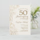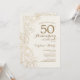 Carton d'invitation pour une fête d'anniversaire de mariage de 50 ans sur le thème Ivory Gold Floral. Design moderne minimaliste avec des dessins au trait botaniques et une typographie en police de caractères script. Carte d'invitation élégante parfaite pour une célébration élégante. Peut être personnalisé pour n'importe quelle année de mariage. Imprimé sur des invitations Zazzle ou modèle numérique téléchargeable instantanément et imprimable.