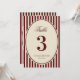 This ivory & burgundy stripes wedding table number features a heritage-style checker pattern in deep burgundy and soft cream tones for a warm, vintage-timeless look. The mix of playful-retro character and elegant contemporary typography creates an understated old-money fall / winter mood with subtle whimsical charm. Designed to coordinate beautifully with the Ivory & Burgundy retro suite, it brings classic nostalgia to a modern table setting.