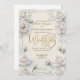 Invitation Ivory Faux Embossed 3D White Rose Floral Wedding