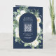 Invitation Ivory Floral Photo Navy Blue QR Code Mariage