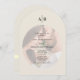 Elegant and modern arched wedding invitation featuring a romantic photo overlay and a minimalist monogram at the top.