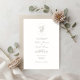 Elegant and chic. This minimalist ivory white wedding invitation card features a contemporary set of taupe fonts and calligraphy accents alongside a oval framed botanical illustration. The back includes a trendy stripe pattern against an ivory sand color for contrast and coheson, adding a sense of modern luxury to the design. Perfectly pairs with other items in the collection.