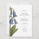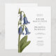 Une illustration numérique originale de jacinthes des bois (campanules) dans le style de croquis botaniques vintage est présentée sur cette invitation.