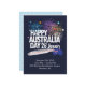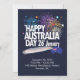 Carte d'invitation de vacances design tendance. Collection "J'ADORE L'Australie". Lettrage "JOIE ! AMOUR ! PAIX !" et "Joyeux Australia Day 26 janvier". Drapeau australien, carte d'Australie, cœur, étoiles et feux d'artifice. Australie drôle, affiche festive de fête nationale patriotique pour la conception de cadeaux et de vêtements. Invitations & Papeterie > Invitations & Annonces. Décoration d'événement de festival. Voyage, Tourisme, Bon voyage, Fête sur la plage, Anniversaire. Conception avec modèle de texte. Personnalisez-les en ajoutant un nom ou un texte de vœux. 2025
