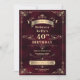 Cette "Invitation d'anniversaire de l'âge d'or glamour de Bourgogne" est une façon sophistiquée et royale de célébrer un anniversaire marquant. L'arrière - plan de bordeaux foncé et féminin, très foncé, dégage un sens de l'élégance classique, tandis que les touches dorées chatoyantes apportent une touche de luxe et de festivité. La typographie et les éléments de design ornés et d'inspiration vintage créent une esthétique distinguée et intemporelle. Cette invitation est plus qu'un simple morceau de carton ; c'est un morceau de déclaration qui donne le ton d'une grande et mémorable célébration. L'invitation met en évidence l'âge du jalon (p. ex., "40e") dans une grande police élégante, établissant immédiatement l'occasion. L'expression "Anniversaire de Rebecca Kelly" indique clairement le but de l'invitation et honore l'individu célébré. Cette invitation est idéale pour quiconque planifie une fête d'anniversaire avec un thème formel, élégant et légèrement vintage. L'élégante palette classique de couleurs bordeaux et dorées dégage un sentiment de prestige et d'intemporalité, ce qui en fait un lieu approprié à la fois pour les grandes fêtes et les réunions plus intimes avec une touche de raffinement. Les éléments design ornés apportent une touche de charme d'antan, ce qui en fait un lieu de séjour idéal pour les amateurs d'esthétique classique. Que vous planifiez un dîner formel, un cocktail ou un événement à thème, cette invitation prépare le terrain pour une fête d'anniversaire sophistiquée et mémorable. Vous cherchez un moyen vraiment élégant et mémorable pour les invités invitations à une fête d'anniversaire jalon? Ce "Glamour Bourgogne or Milestone Age Anniversaire Invitation" est le choix parfait. C'est une façon élégante et sophistiquée d'honorer l'individu célébré et de rendre les invités enthousiastes pour l'événement. Cette invitation est plus qu'un simple bout de papier ; c'est un souvenir qui capture l'esprit de l'occasion et reflète le style distingué de l'honoré. Imaginez l'impression que vous aurez sur les invités quand ils recevront cette invitation personnalisée et réfléchie. C’est une façon garantie de donner le ton pour un anniversaire vraiment spécial et inoubliable.