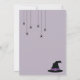 Illustration de l'Halloween de Destei : jambes de sorcière rayées violettes et blanches. La sorcière porte une jupe noire et des chaussures noires. Les chaussures ont des détails violets et des araignées pendent autour de la sorcière. La couleur arrière - plan est violet clair et il y a trois zones de texte personnalisables parfaites pour les détails de l'événement. De l'autre côté, il y a un casquette de sorcière et d'autres araignées.