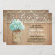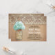Cute invitation à dîner de répétition rustique avec bocal de mason avec fleur d'hydrangée turquoise. Invitation parfait pour un dîner de répétition de pays avec dentelle vintage et des accents de bois en difficulté.