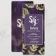 Invitations de mariage violet et d'or avec des fleurs en faux or
