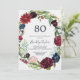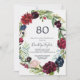 Cette invitation de 80e anniversaire de jardin bordeaux automne est parfaite pour une fête d'anniversaire d'automne. Le design floral présente de superbes fleurs d'aquarelle rose, rouge, marine et bordeaux, des fleurs et des feuilles verts disposés dans une couronne d'automne animée. Personnalisez le dos de la carte avec le nom de l'invité d'honneur et l'événement.