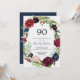 Cette invitation de 90e anniversaire de jardin bordeaux automne est parfaite pour un anniversaire d'automne. Le design floral présente de superbes fleurs d'aquarelle rose, rouge, marine et bordeaux, des fleurs et des feuilles verts disposés dans une couronne d'automne animée. Personnalisez le dos de la carte avec le nom de l'invité d'honneur et l'événement.
