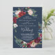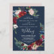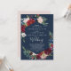 Cette carte de faire-part de mariage bleu marine du jardin d'automne est parfaite pour un mariage de automne. Le design présente de magnifiques fleurs d'aquarelle rose vif, rouge, marine et bordeaux, des fleurs et des feuilles verts disposés dans un cadre floral automnal animé.