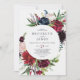 Cette faire-part de mariage décontractée bordeaux de jardin d'automne est parfaite pour un mariage de automne. Le design présente de magnifiques fleurs d'aquarelle rose vif, rouge, marine et bordeaux, des fleurs et des feuilles verts disposés dans un cadre floral automnal animé.