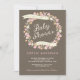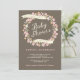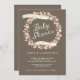 Ce joli design de couronne de fleurs en rose tendre, pêche et crème d'ivoire encercle la jolie typographie sur cette invitation Baby shower féminine et est dressé contre un délicat arrière - plan brun de sable. Elégant et sucré, c'est une invitation charmante à tout Baby shower célébrant une petite fille ; et particulièrement adapté pour une fête de jardin, une fête du thé ou une douche de printemps.