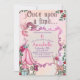 Cette invitation magique et enchanteresse à la fête d'anniversaire présente un thème de jardin de conte de fées mignon. L'expression "Il était une fois" est imprimée en haut dans une police fantaisiste. Une jolie fée aux cheveux roses et aux ailes qui volent en dessous. La partie inférieure présente une jolie petite maison de fée en bas à gauche et un cerf de bébé doux à droite.