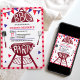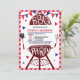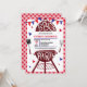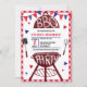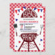 Amusement d'été jardin barbecue grill 4 juillet fête avec l'illustration d'un barbecue grill, plaid rouge en vichy motif, drapeaux patriotiques bleu rouge, et ustensiles de cuisine avec une craie moderne à la main banquette barbecue.