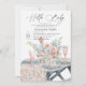 Avoir un baby shower d'été ? Cet invitation de baby shower neutre et de sexe enchanteur, qui présente une aquarelle illustrant un cadre rustique et élégant de table rose et bleu, est parfait pour une fête de jardin de baby shower neutre ou un élégant pique-nique de baby shower.