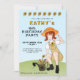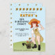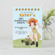 Jolie jardinage Fleurs Filles Cheveux Brown Fille Anniversaire Invitation. Dessin d'une fille avec des fleurs dans une canette d'arrosage et des tournesols. A l'arrière, un motif de tournesol. Ajoutez votre texte et faites une amusante invitation d'anniversaire pour la fille.
