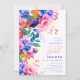 Invitations vos chers à se joindre à vous pour célébrer l'amour florissant d'une future mariée avec notre Bright Painted Garden Floral Bridal Shower Invitation. Cette invitation vibrante évoque l'esprit joyeux d'un jardin de printemps fleuri, ouvrant la voie à un événement tout aussi coloré et gai. L'invitation est un jardin vif de fleurs peintes dans les tons violet, rose, bleu et orange. Chaque détail est conçu avec soin, communiquant la joie et l'excitation de l'occasion à venir. Le texte calligraphique exquis ajoute une touche de classe, amplifiant le charme de l'invitation.
