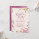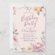 Calligraphie moderne script de fête d'anniversaire entouré d'une jolie aquarelle florale en jaune pastel muet, pêche, mauve et prune, grandes invitations d'anniversaire élégantes.