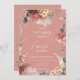 Elégance et simplicité, avec une touche de romantisme rendent ce faire-part de mariage unique. Un doux arrière - plan rose roux et poussiéreux met la scène sur cette invitation, entouré d'un beau cadre fleuri de jardin de rose poussiéreux, crème, jaune pâle et turquoise. Créé par Simply Farmhouse Press.