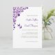Bois, jardin secret, faire-part de mariage fleurie violet avec lovebirds. Coin floral détaillé dans le pourpre de chardon. Customisez avec vos noms dans le script violet de chardon et vos informations mariages en lettres brun. Conçu pour correspondre à notre collection Lovebirds Secret Garden Wedding Collection.