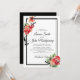 Fleurs roses d'aquarelle élégantes dans des invitations de mariage de style vintage avec des lettres délicates. L'arrière-plan de l'invitation est une couleur solide vert feuille.