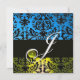 Invitation JAUNE BLEU NOIR DAMASSÉ MONOGRAMME Topaze