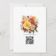 Faire-part de mariage fleurie jaune doré et rouge à lèvres. Idéal pour un mariage de automne d'automne. Le code QR au verso se dirige vers votre site mariage où les gens peuvent en savoir plus et rsvp