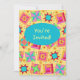Invitation un amoureux de courtepointe ou de courtepointe avec cette invitation colorée entièrement personnalisable. Customisez pleinement sur le devant et le dos pour ajouter vos propres mots, noms et autres informations. Cet art original de courtepointes fait une invitation vibrante. L'art de la surface composée à partir de l'art original présente des blocs de surface de patchwork préférés, ainsi que des blocs uniques aux couleurs vives et dynamiques d'orange, jaune, rose, turquoise et vert citron sur un arrière - plan jaune ensoleillé pour une belle palette de couleurs. Un ovale bleu turquoise turquoise est sur le devant de la carte pour dire "Vous êtes invité" ou d'autres mots de votre choix. Montrez votre amour de la courtepointe avec ces créations d'art de courtepointe avec d'autres produits d'art de courtepointe. L'art Quilt est l'art original de Phyllis Dobbs, concepteur de tissus et de courtepointes, et il se trouve dans une collection de tissus de Quilting Treasures. Cet art est disponible sur d'autres produits et dans plusieurs arrière - plans de couleurs. D'autres produits sont disponibles dans Phyllis' BusinesswithFlair store. Correspondance avec la coordination des timbres, enveloppes, autocollants et étiquettes d'adresse de retour.