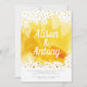 Aquarelle jaune, feuille et or confetti typographie faire-part de mariage.
