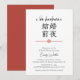 Voici une invitation pour barbecue nuptiale qui mêle fête fumée et élégance japonaise subtile 🔥 🎀 Conçu avec un design moderne propre, cet invitation présente des caractères de kanji gracieux pour "mariage eve", un arc floral rouge doux d’inspiration mizuhiki, et une calligraphie délicate qui dit "Je fais du barbecue". Il est parfait pour les couples qui aiment l'esthétique japonaise mais veulent garder les choses minimalistes et significatives. Que vous soyez à la recherche de yakitori grillés ou de burgers classiques, cette invitation donne un ton raffiné et réfléchi à votre célébration ! Associé à la tradition et à une touche de charbon de bois du Japon, Junko 🍢