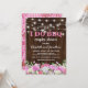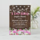 Invitation de baby shower couple country 'Je fais un barbecue' avec un fond en bois rustique, des guirlandes de lumières de jardin, des fleurs aquarelles élégantes roses et blanches, et un modèle de fête de fiançailles facile à personnaliser.
