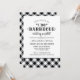 Une invitation festive et élégante de célébration de réception de mariage pour un événement décontracté de BBQ de jardin d'été. Le texte comprend "Rejoignez-nous pour une réception de mariage barbecue "Je le veux" " en l'honneur d'un couple récemment marié. Couleurs de design classiques noir et blanc.