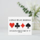 Si vous organisez une fête de bridge ou un jeu de bridge en double — un jeu spécial, peut-être pour célébrer l'anniversaire de quelqu'un ou l'exploit de gagner le statut de LifeMaster — vous profiterez de l'une de ces invitations personnalisables avec les quatre costumes de cartes ainsi que le dicton suivant : Je Ne Joue Au Pont Que Les Jours Qui Se Terminent En "Y".