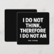 Ajoutez un peu d'humour à votre style avec ceci Je ne pense pas Donc je ne suis pas, Drôle design de devis graphique. Un cadeau parfait pour les hommes, les femmes, les enfants et les amoureux de félins qui aiment les chats, les ratons laveurs, les opossum, les mèmes d'inspiration japonaise, les blagues spatiales et l'humour philosophique plein d'esprit. Idéal pour les vibrations printanières, les anniversaires ou les rires de tous les jours !