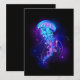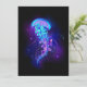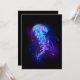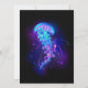 Grande méduse bleue, artistiquement dessinée, brillante, brillante, avec de longues tentacules sur arrière - plan noir avec bioluminescence violette. Méduse brillante.