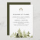 Cette annonce de changement de plans de mariage présente des pins aquarelles rustiques et une police manuscrite bohème. Modifiez facilement tous les textes de cette annonce d'invitation pour mieux répondre à vos besoins.