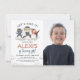 Préparez-vous à une fête d'anniversaire sur le thème du ninja. Cette conception dynamique présente une aquarelle captivante illustration de trois petits ninjas, qui frappent chacun leur pose d'arts martiaux préférés, émergeant d'une explosion de fumée, ou flottant sur un nuage. Customisez l'invitation en ajoutant une photo personnalisée du garçon d'anniversaire sur le côté droit. L'expression ludique "Let's Kick It!" au-dessus des ninjas combine le concept de traîner avec le monde des arts martiaux. L'invitation appelle tous les ninjas à se joindre à la fête, avec le nom du garçon d'anniversaire en lettres rouges gras et l'âge en script bleu amusant. Les détails de l'événement sont présentés dans une typographie simple et propre, avec des étoiles ninja encadrant les informations importantes de la date et de l'heure. Retournez la carte pour révéler un motif de nuages et d'armes étoiles ninja. Parfait pour les 4 à 10 ans, ce design énergique donne le ton d'une fête d'anniversaire passionnante et mémorable qui promet action, aventure et plein de plaisir. Customisez cette invitation afin de refléter les détails spécifiques de votre parti. N'hésitez pas à m'envoyer un message pour toute question, veuillez noter que je ne peux pas modifier une commande existante. Parcourez notre collection pour plus d'invitations d'anniversaire de garçon!